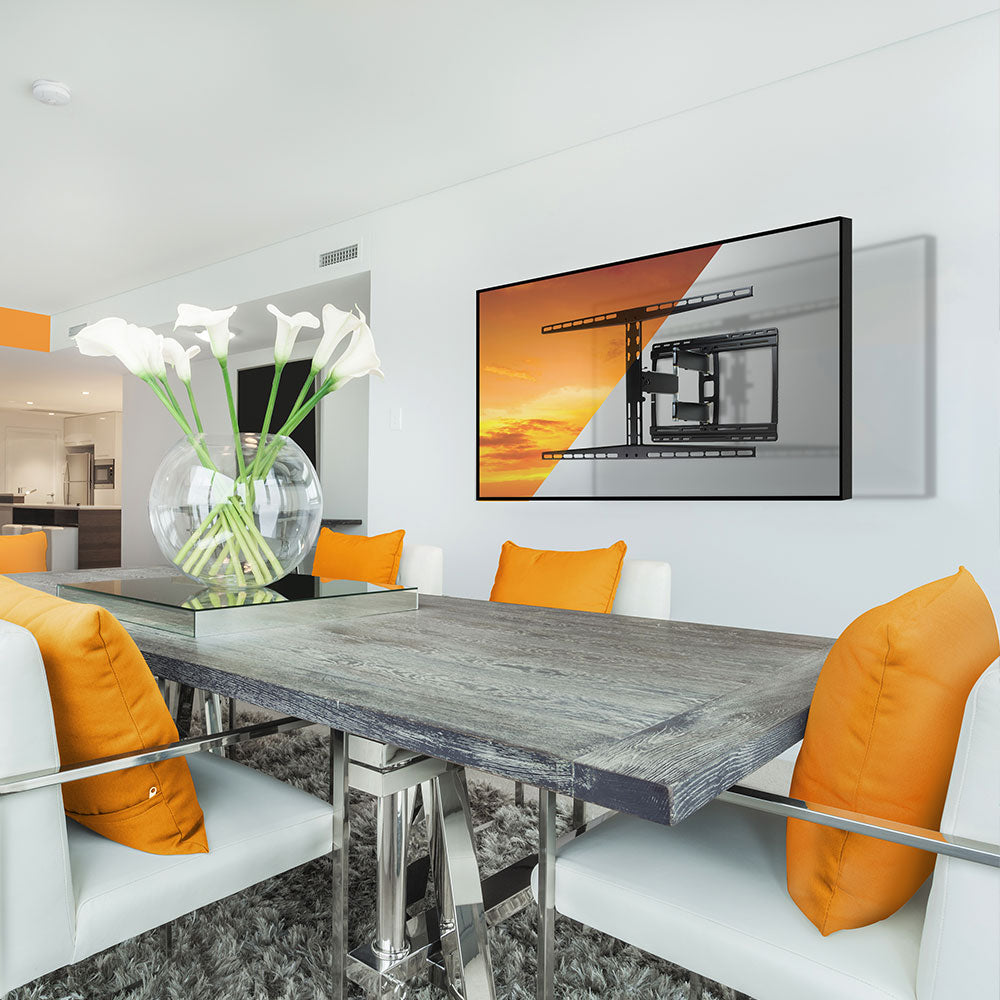 Extends over 19.1" (48.5cm) from the wall with a ±180˚ swivel.
